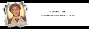 Oh, he is just as much of an open door as he is in the school. – Nothing but an open door, an open book. A book written in letters that had no meaning, words that didn’t make sense- but yet it was still open. Just unreadable. Valcourt was open to questions, open to answer anything, but was it even the truth? Elouen was an open door, you can walk in and welcome yourself in, he wouldn’t care. Yet, of course, as anyone else; he kept to himself. Kind of. Minus the talking outloud to himself.